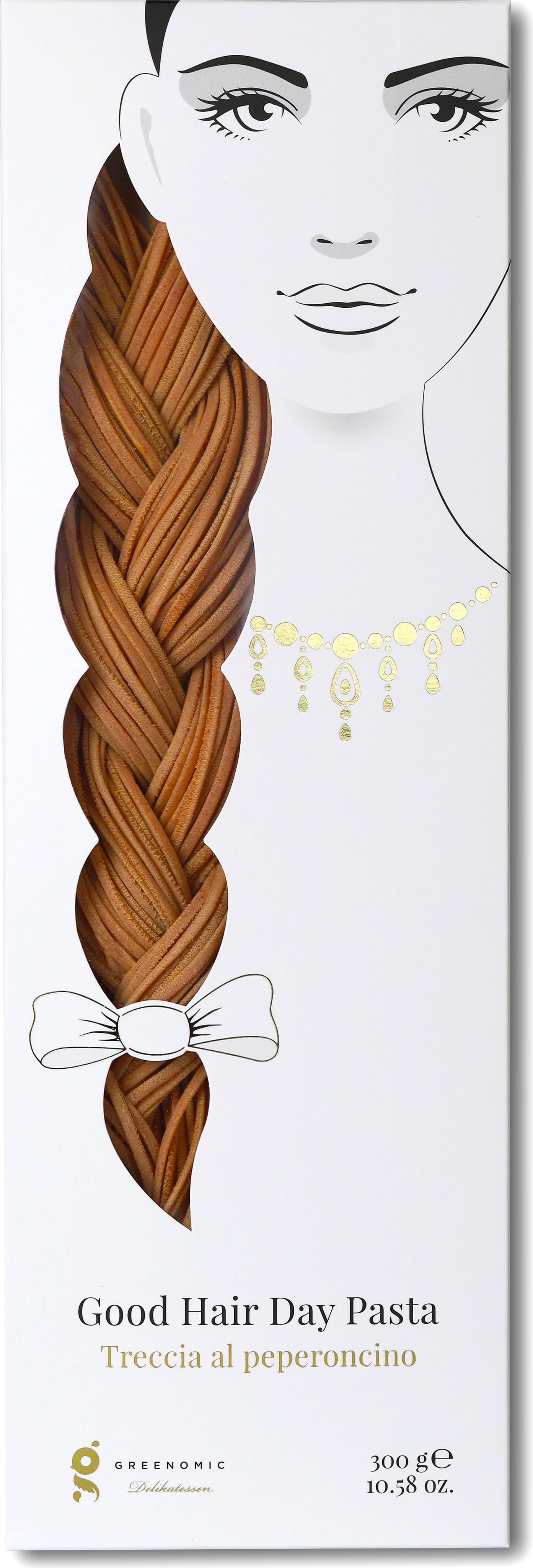 Una auténtica trenza de espaguetis con guindilla. El original diseño del paquete hace que este producto sea ideal para hacer un regalo gourmet. La pasta se elabora con sémola de trigo duro aromatizada con guindilla y molde de bronce.