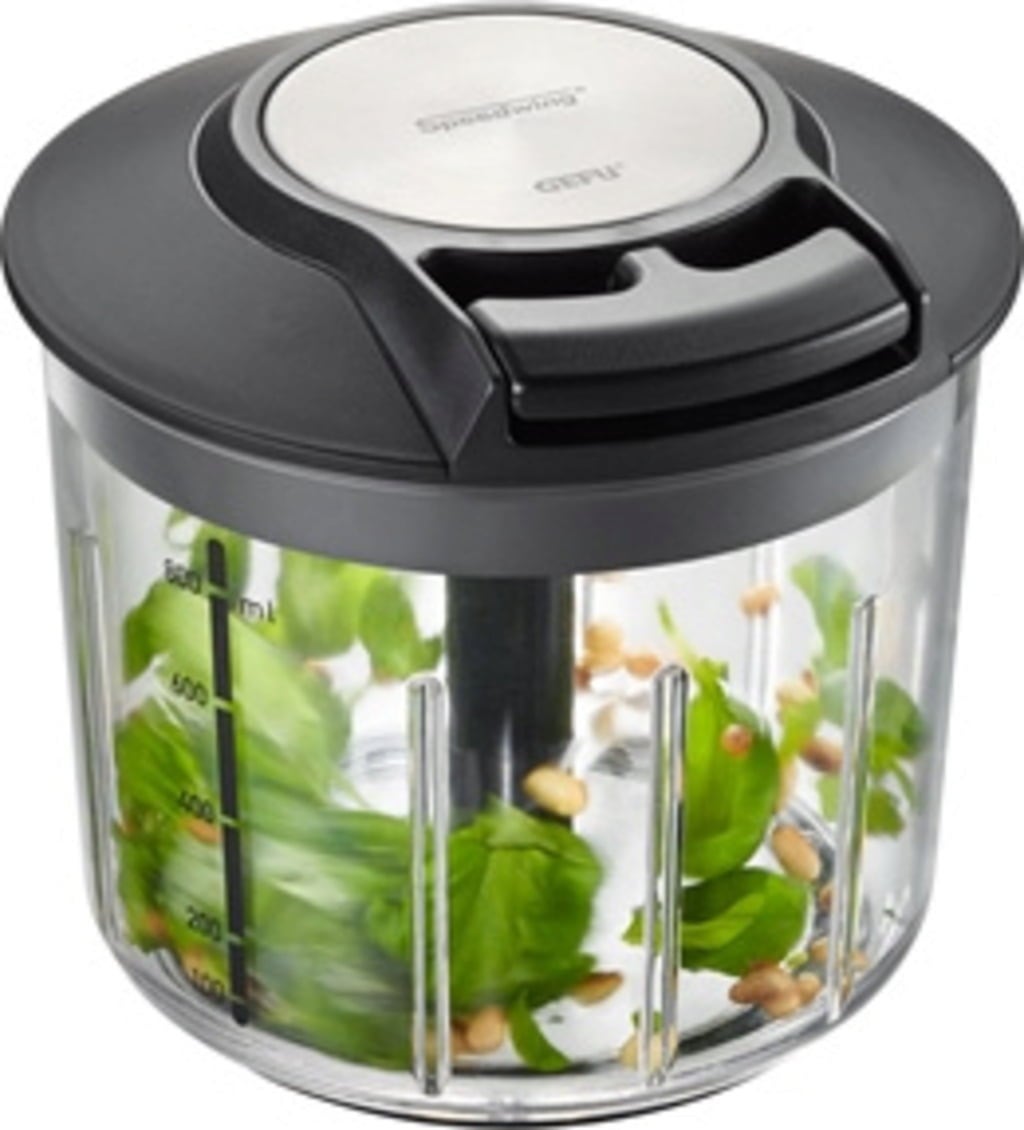 Su eficiencia se debe a su mecanismo de tracción manual y a su mango ergonómico: con solo unos pocos tirones, puede obtener una carne picada gruesa o muy fina, según el tiempo de procesamiento. Las dos cuchillas curvas, extremadamente afiladas y fabricadas en acero japonés, garantizan resultados óptimos. Las ranuras del recipiente transparente de 800 ml garantizan que los ingredientes siempre vuelvan a las cuchillas. La cesta de secado y la pala mezcladora se pueden cambiar rápidamente, para que siempre tenga el accesorio adecuado para cada receta.