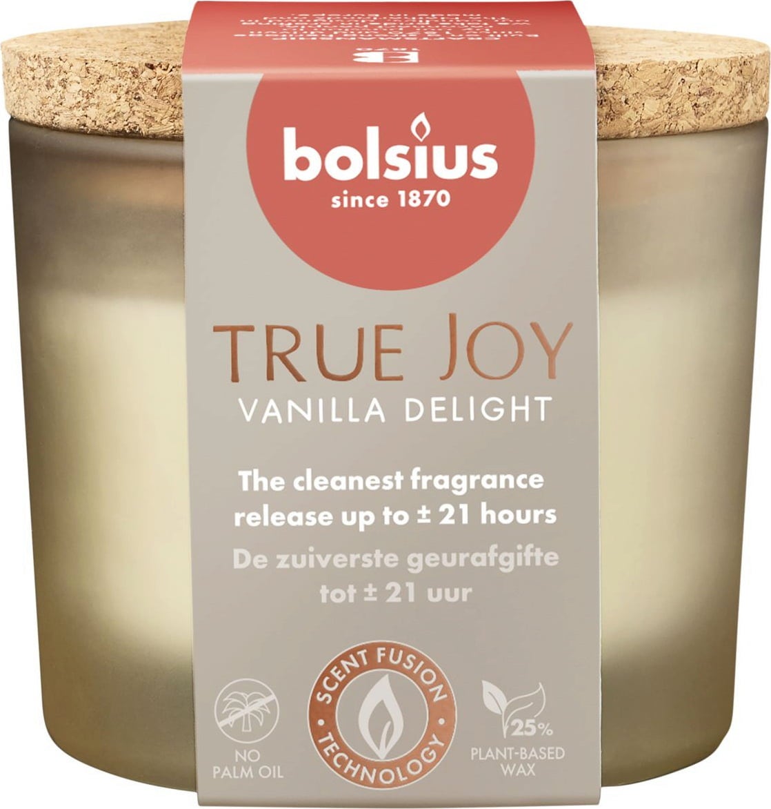 bolsius Vela perfumada True Joy con tapa de corcho, Delicia de vainilla
