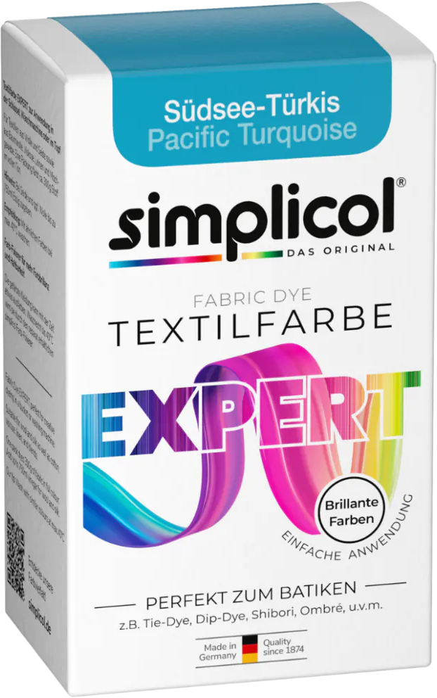 ¿Quieres dar un nuevo aspecto a tus telas y dar rienda suelta a tu creatividad? Entonces utiliza el tinte para tejidos EXPERT de simplicol para tus proyectos caseros. Su fórmula garantiza un color intenso y fresco. Es ideal para crear el efecto Batik, Dip-Dye o refrescar el color de tus prendas favoritas.