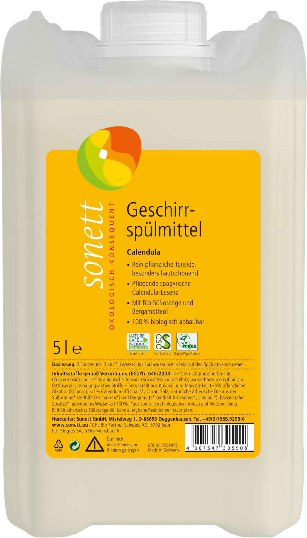 Sonett Detergente Lavavajillas a Mano - Caléndula, 5 l