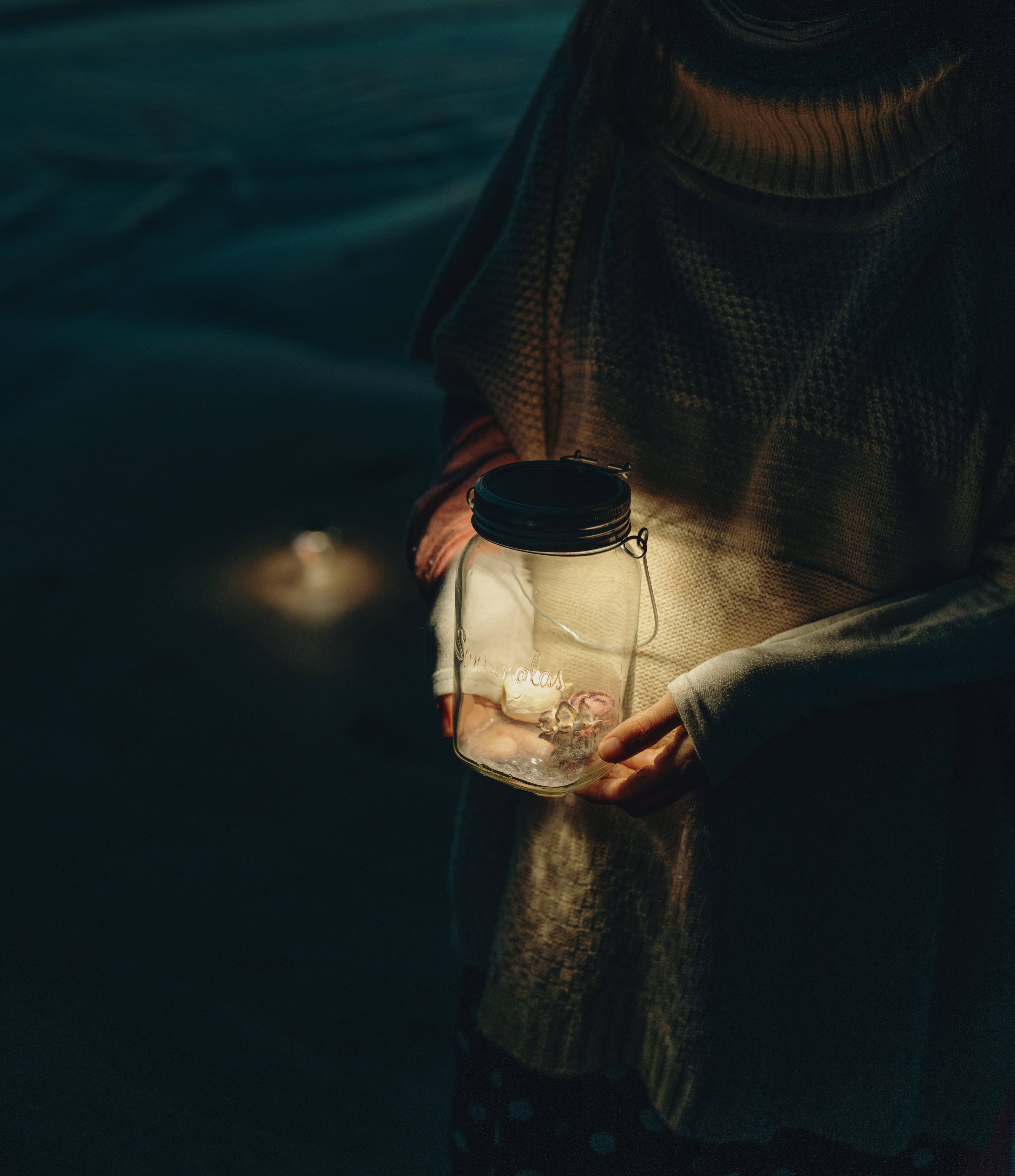 Flores secas, piedras, arena o conchas - no importa lo que te guste, puedes introducirlo en tu Sonnenglas® y crear tu propia decoración única. Los LED integrados permiten que el contenido del vaso brille con la luz más bonita y también son lo suficientemente brillantes como para usarse como una luz de lectura sostenible. Durante el día, el panel solar carga la batería, por lo que por la noche todo lo que tienes que hacer es accionar el interruptor magnético para disfrutar de la maravillosa luz.