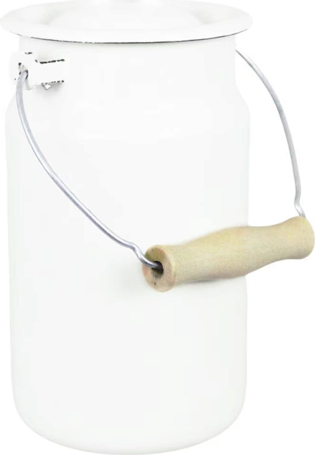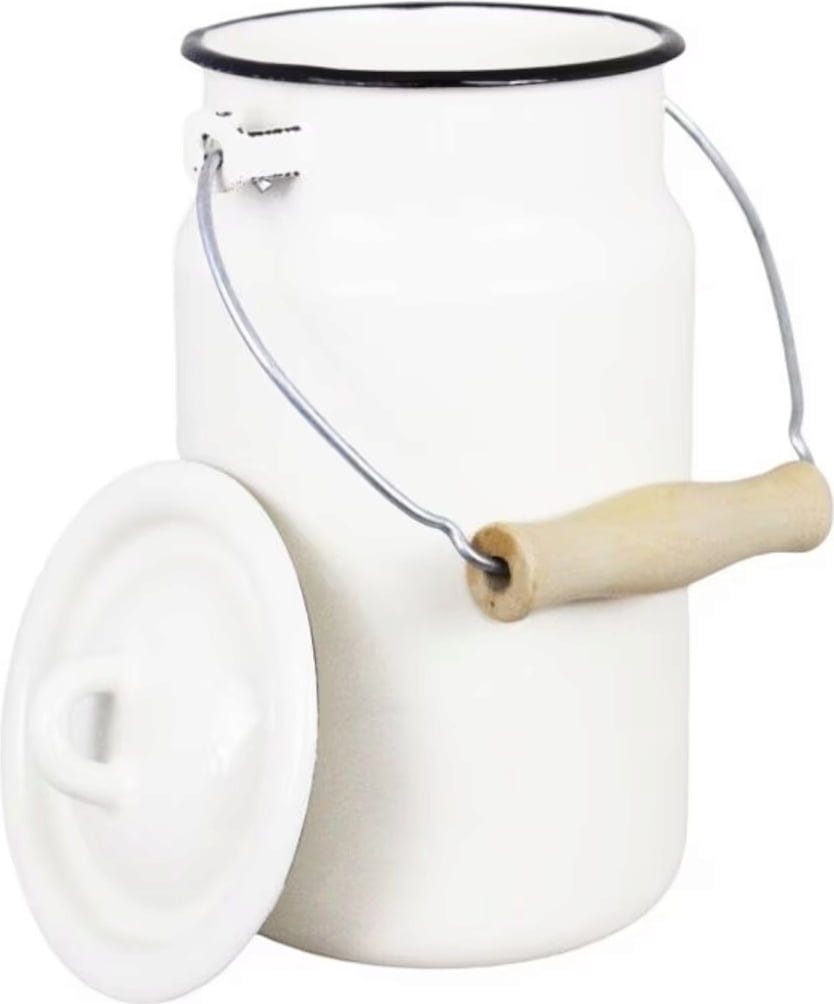 Esta lechera esmaltada con un fantástico diseño retro no solo es ideal para la leche y otras bebidas, sino que también puede utilizarse como elegante recipiente para utensilios de cocina o como jarrón para tus flores favoritas.