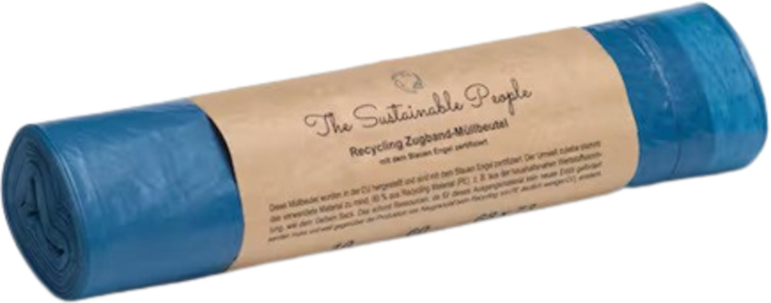 Estas bolsas de basura que ahorran recursos consisten en al menos un 90 % de residuos posconsumo (PE), por lo que se utiliza menos CO₂ que en la producción de PE nuevo y no es necesario extraer petróleo crudo nuevo. Las bolsas de basura son resistentes al desgarro y al agua, mientras que el práctico cierre fácil hace que sea mucho más fácil de usar. Durante la eliminación, las bolsas son fáciles de reciclar y se queman limpiamente, sin dejar residuos en la planta de incineración de residuos.