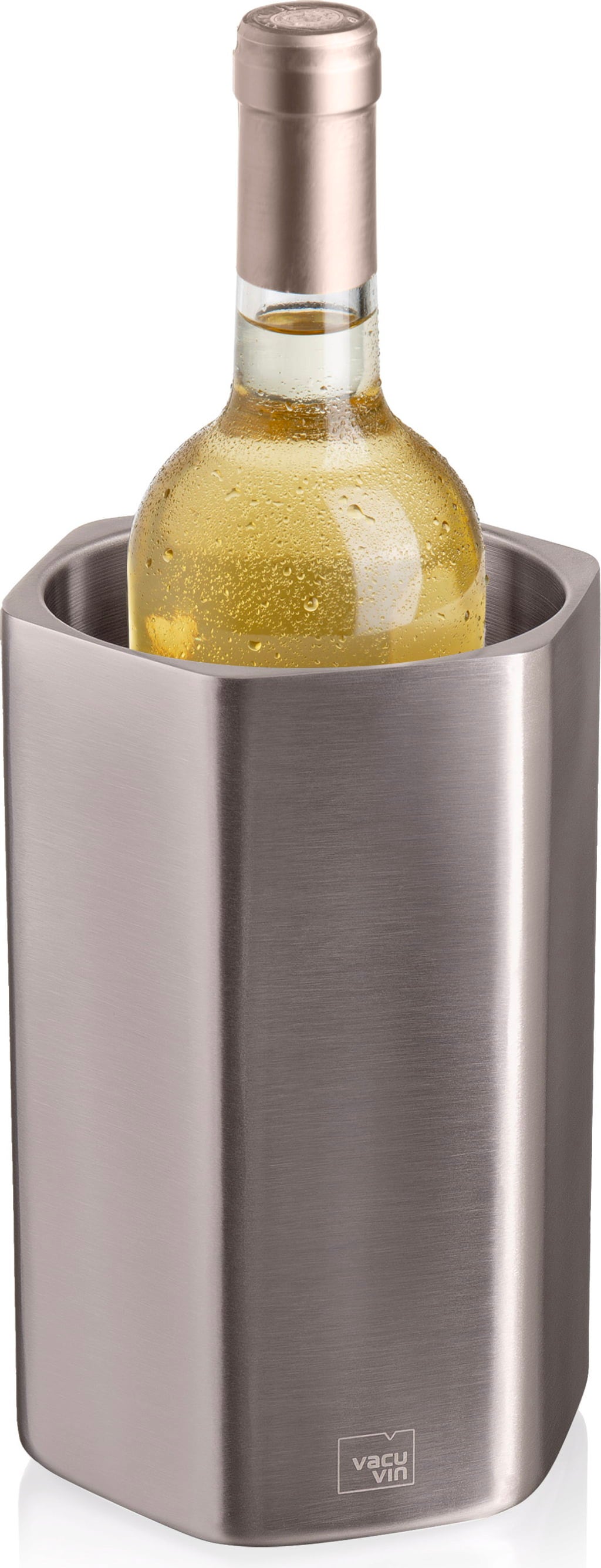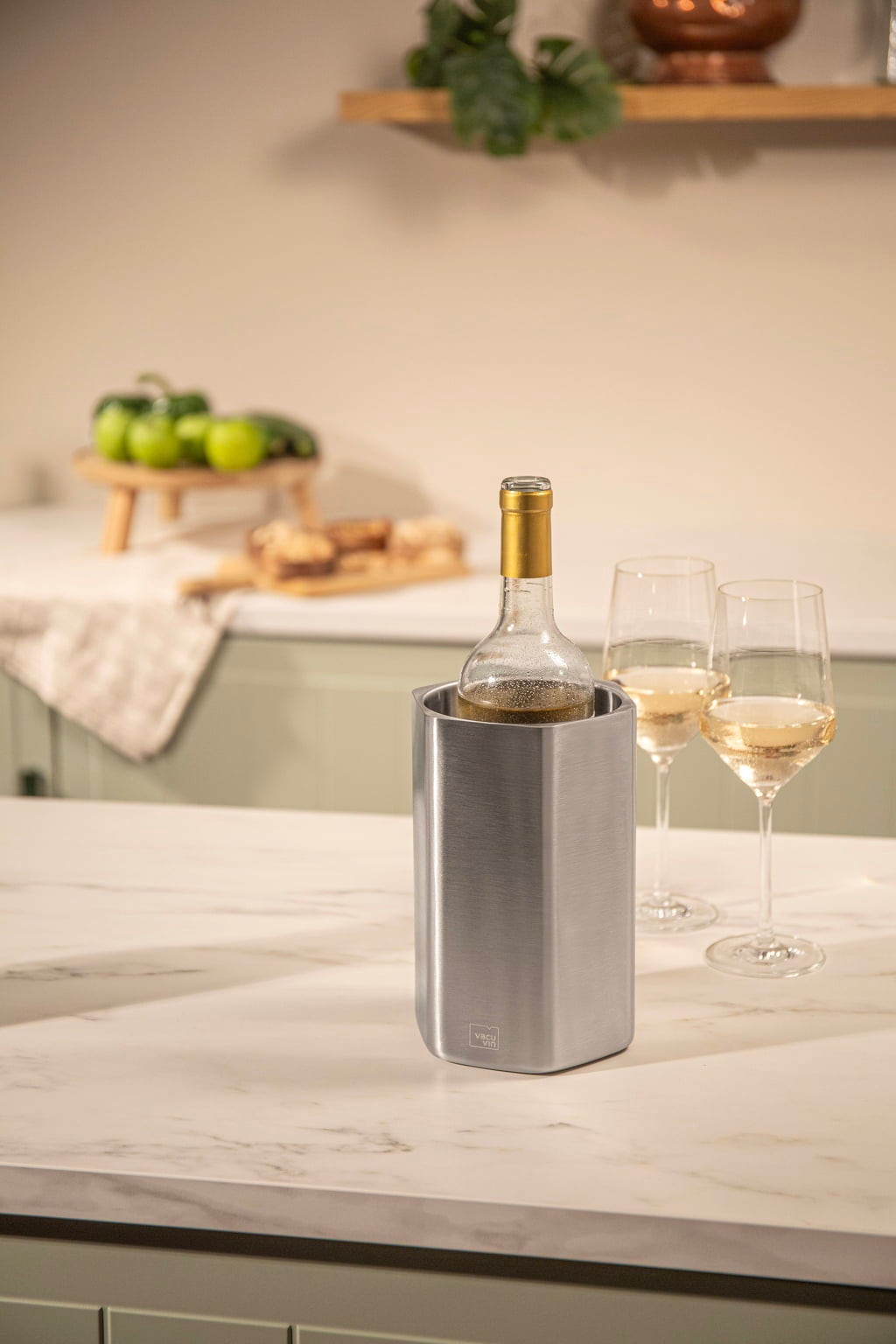 El enfriador de botellas IVE de Vacu Vin en acero inoxidable combina una refrigeración eficaz con un diseño elegante. La estructura de doble pared aísla perfectamente, manteniendo el vino agradablemente fresco durante horas, sin necesidad de añadir hielo.