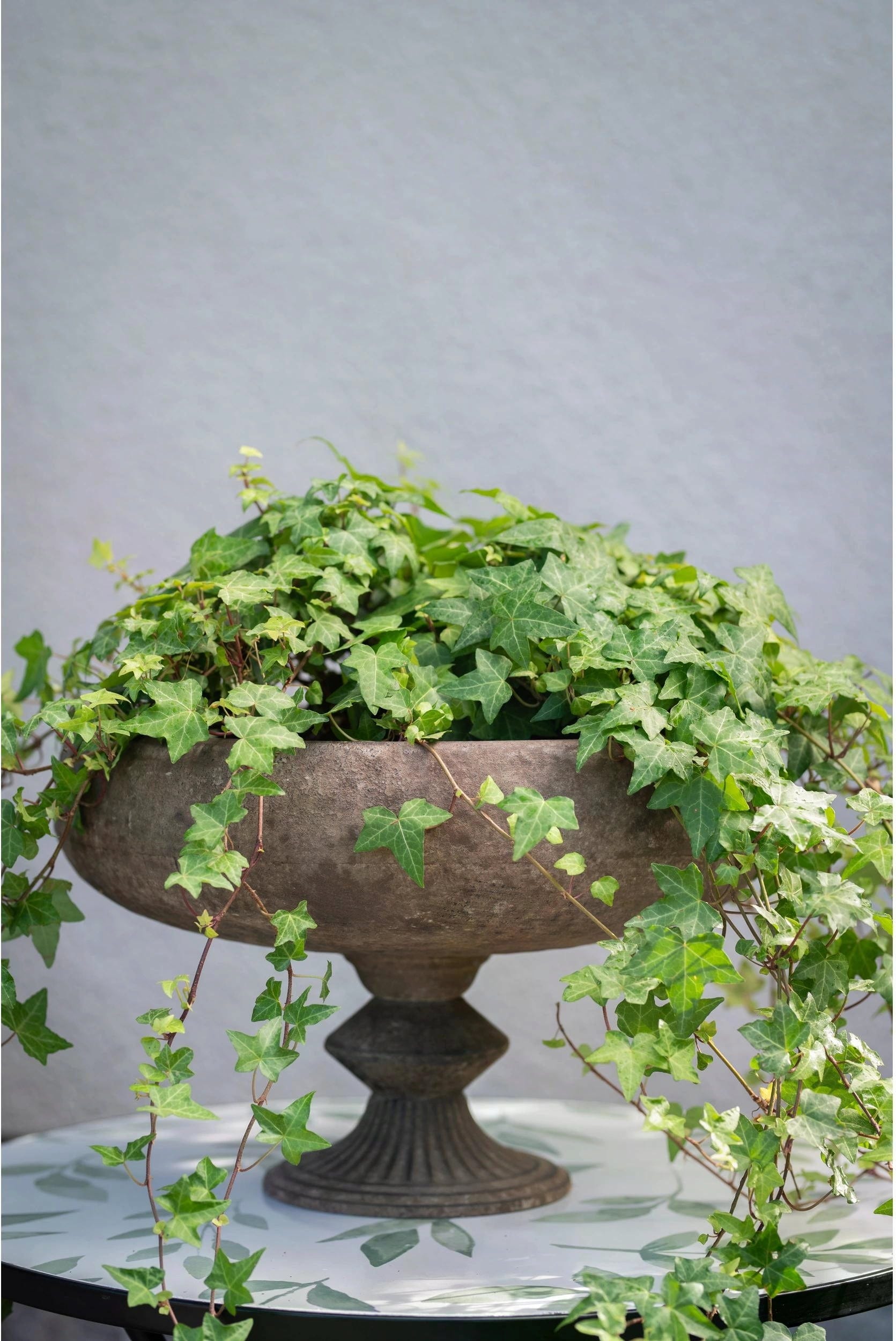 Esta maceta en forma de copa aporta un encantador encanto vintage al jardín y ofrece un marco especialmente elegante para realzar diferentes tipos de plantas.