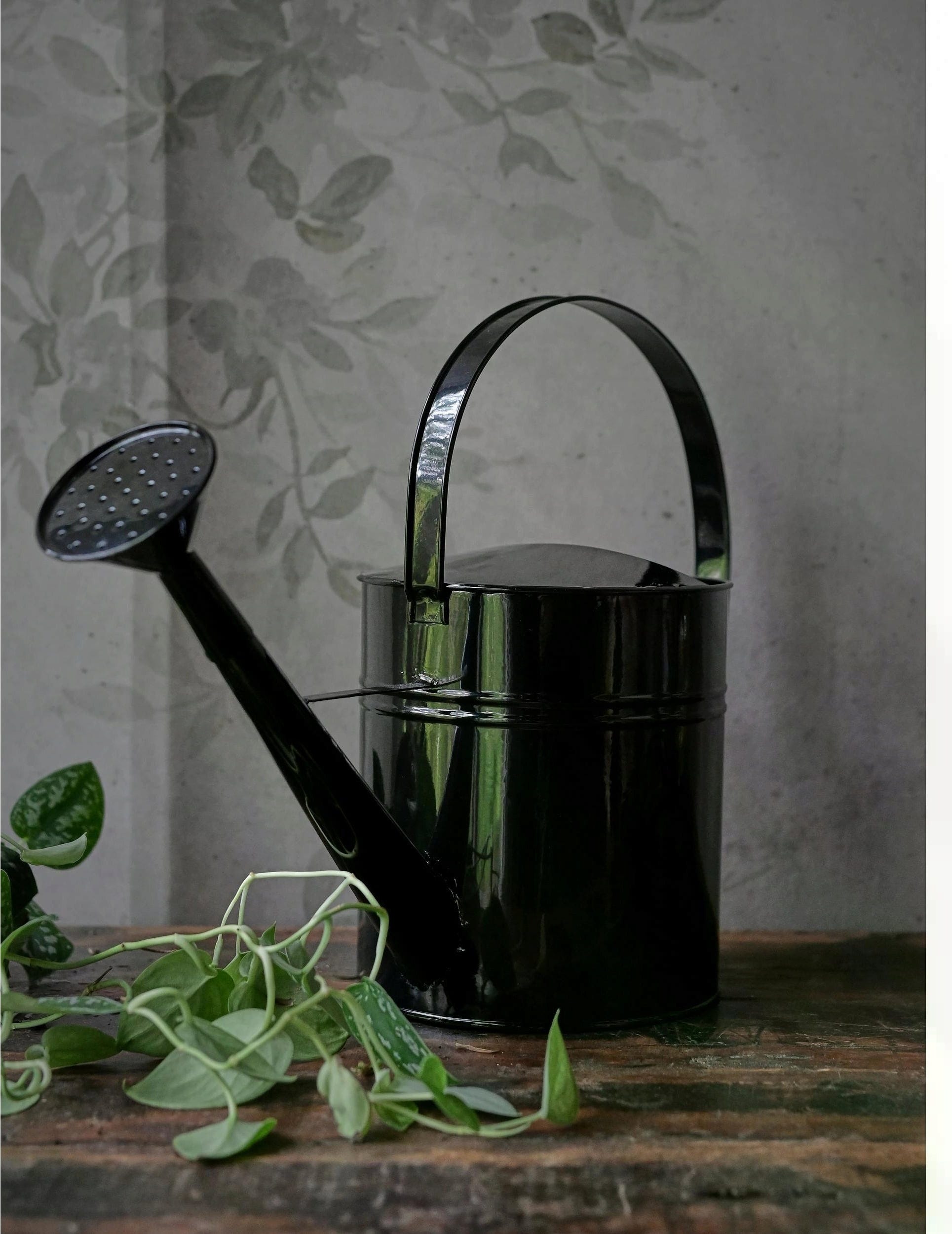 Esta elegante regadera de color negro es ideal para regar las plantas del jardín y destaca no solo por su refinado diseño, sino también por su robusta calidad y gran funcionalidad.