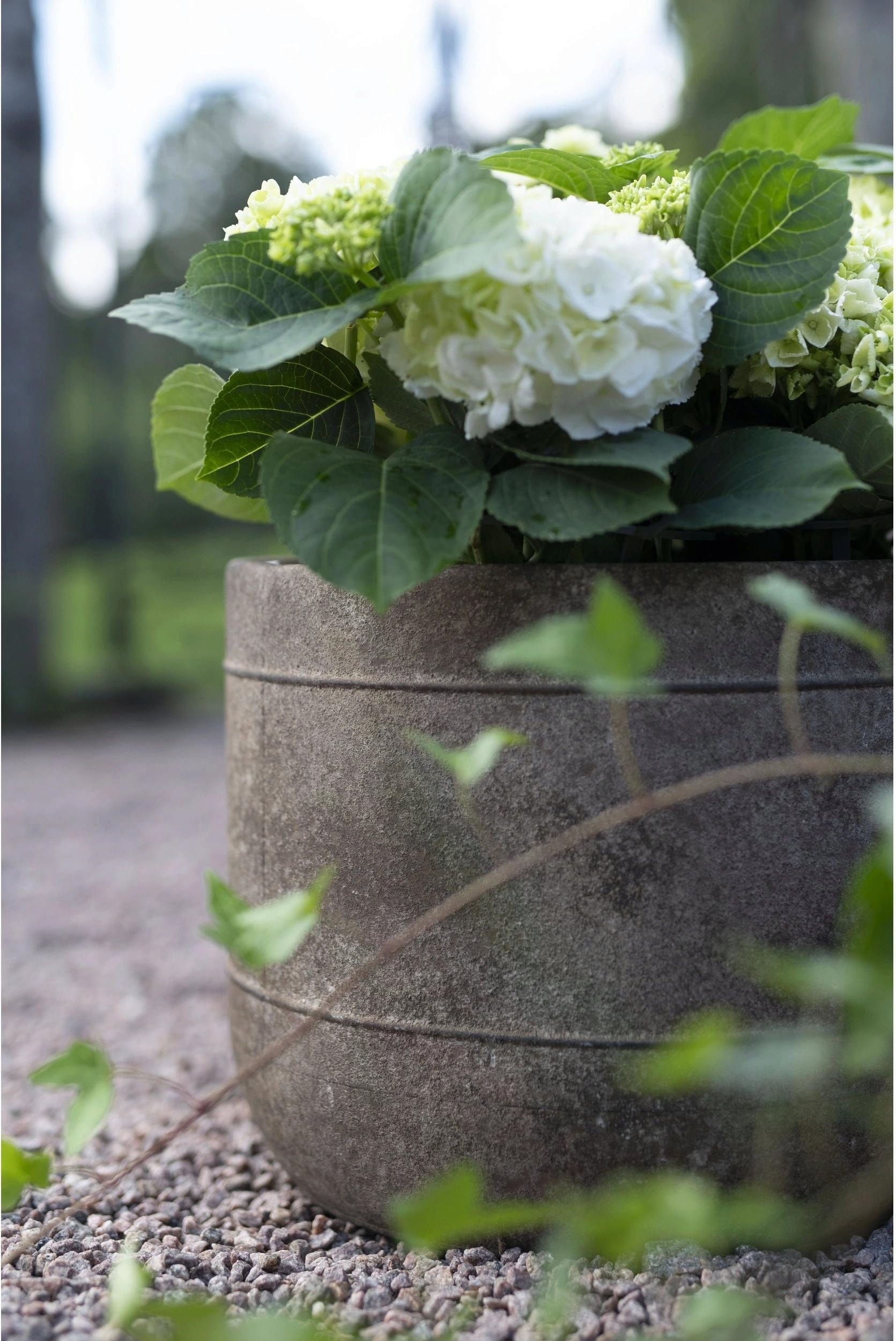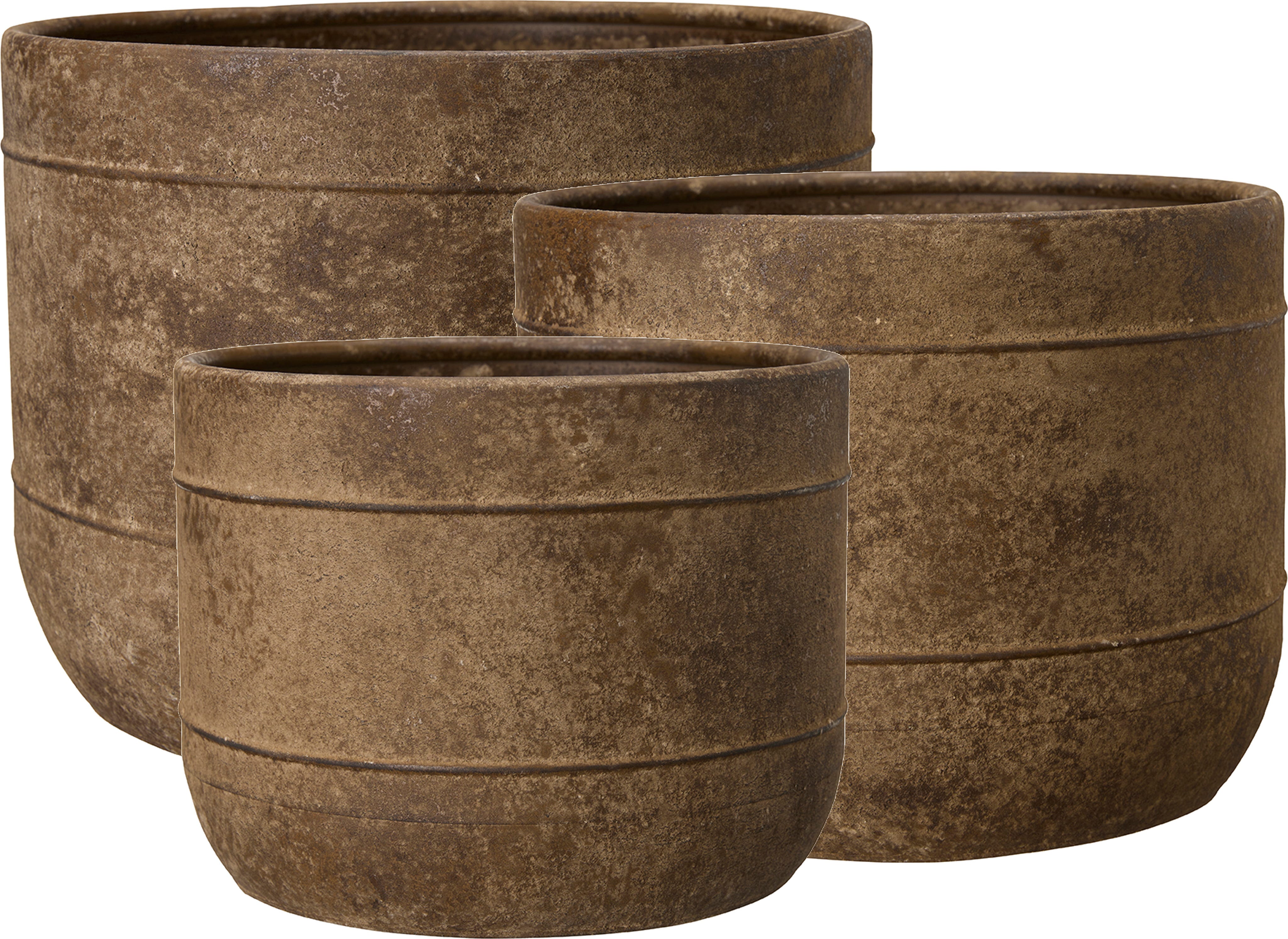 Este set de macetas realza el irresistible encanto de los jardines de estilo rústico y romántico gracias a su sugerente acabado efecto óxido. Realza al máximo las flores y las plantas y añade toques decorativos con mucho carácter.