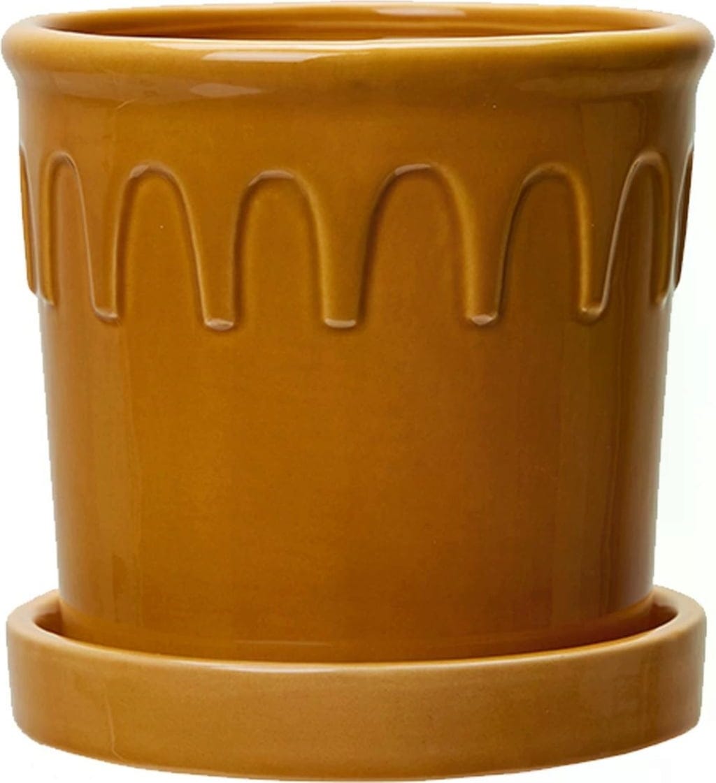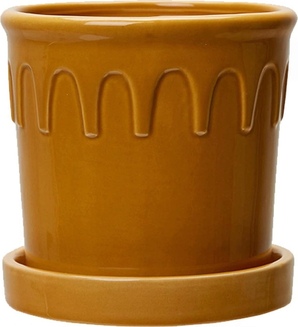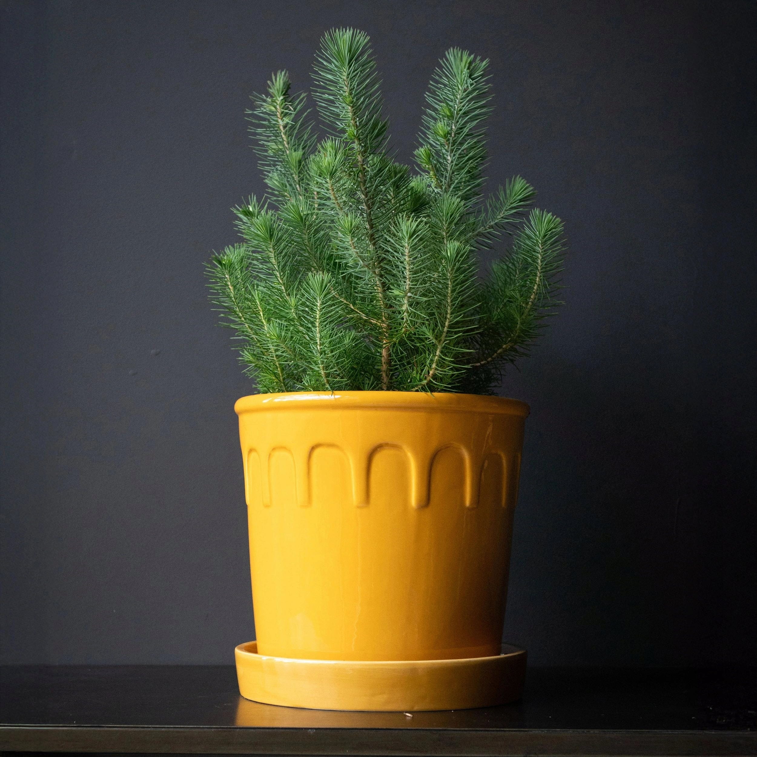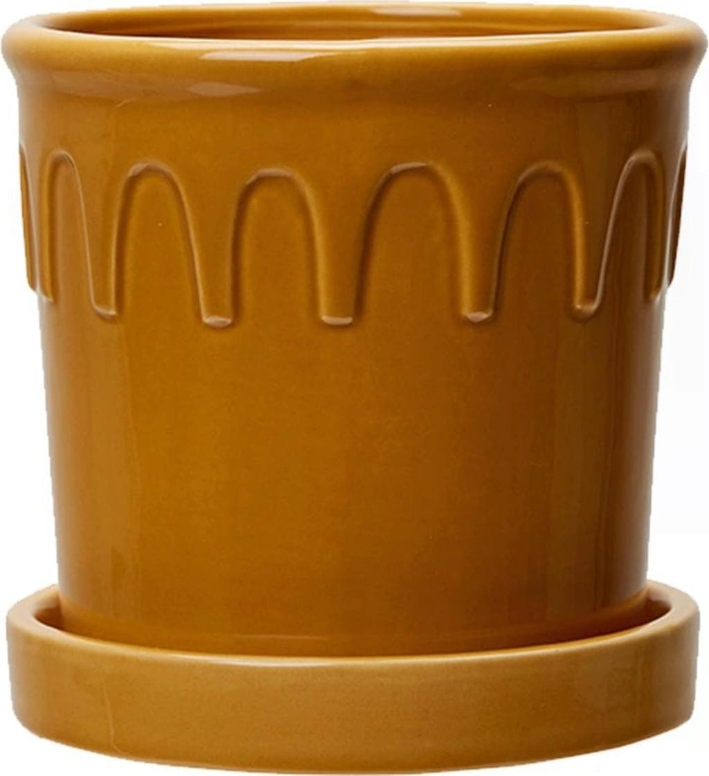 Con su atractivo tono amarillo, estas macetas realzan especialmente el verde de las plantas de pequeño tamaño. El diseño combina elementos modernos con delicados toques vintage, convirtiéndolas en refinados elementos decorativos.