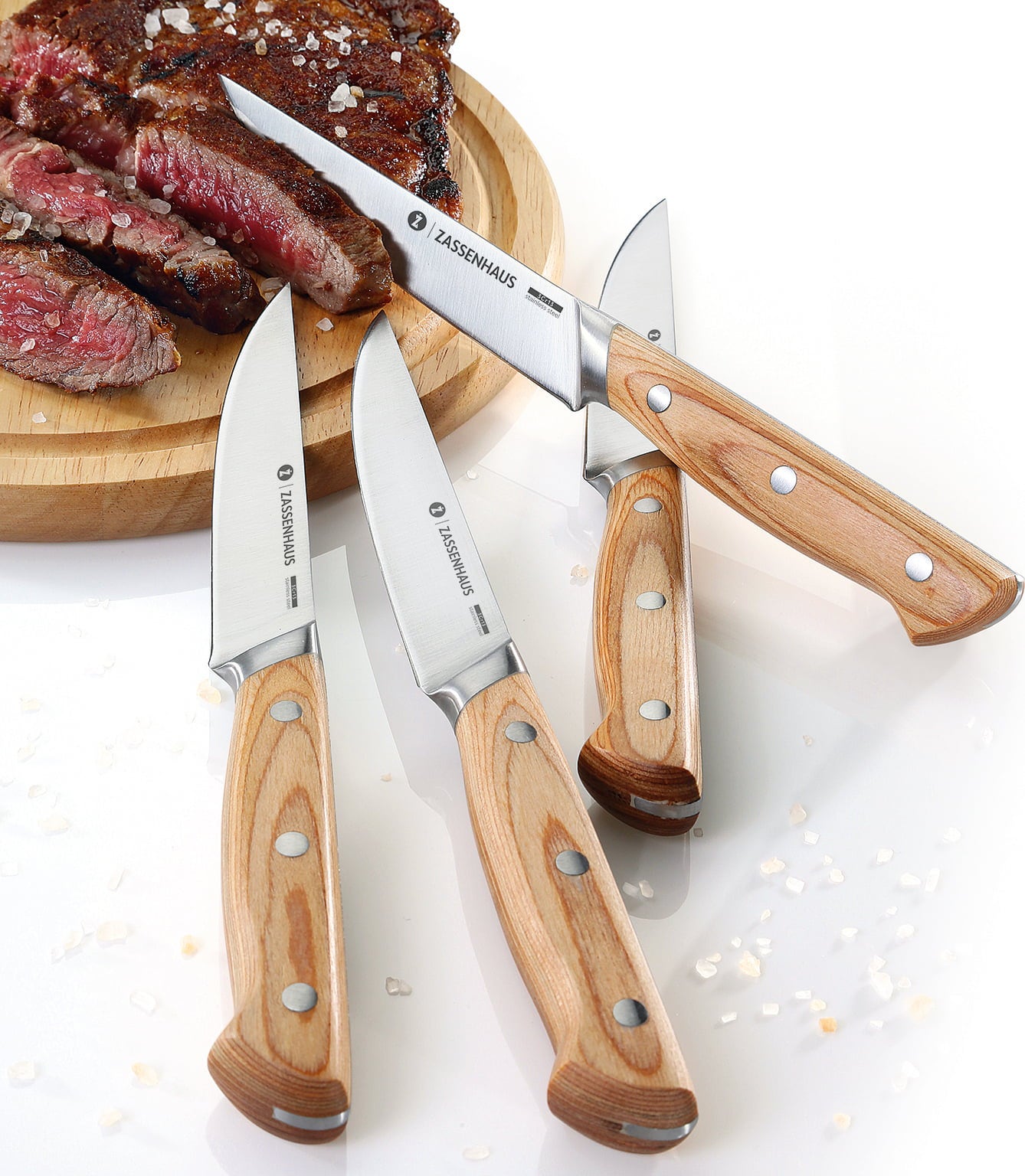 Con el set de cuchillos para carne Zassenhaus, cada filete se convierte en un plato estrella. Las hojas lisas de acero especial cortan con precisión, mientras que los mangos de madera de pakka ofrecen un agarre seguro y cómodo. Las variaciones en el veteado y en los colores hacen que cada cuchillo sea único, presentado de forma impecable en una elegante caja de madera.
