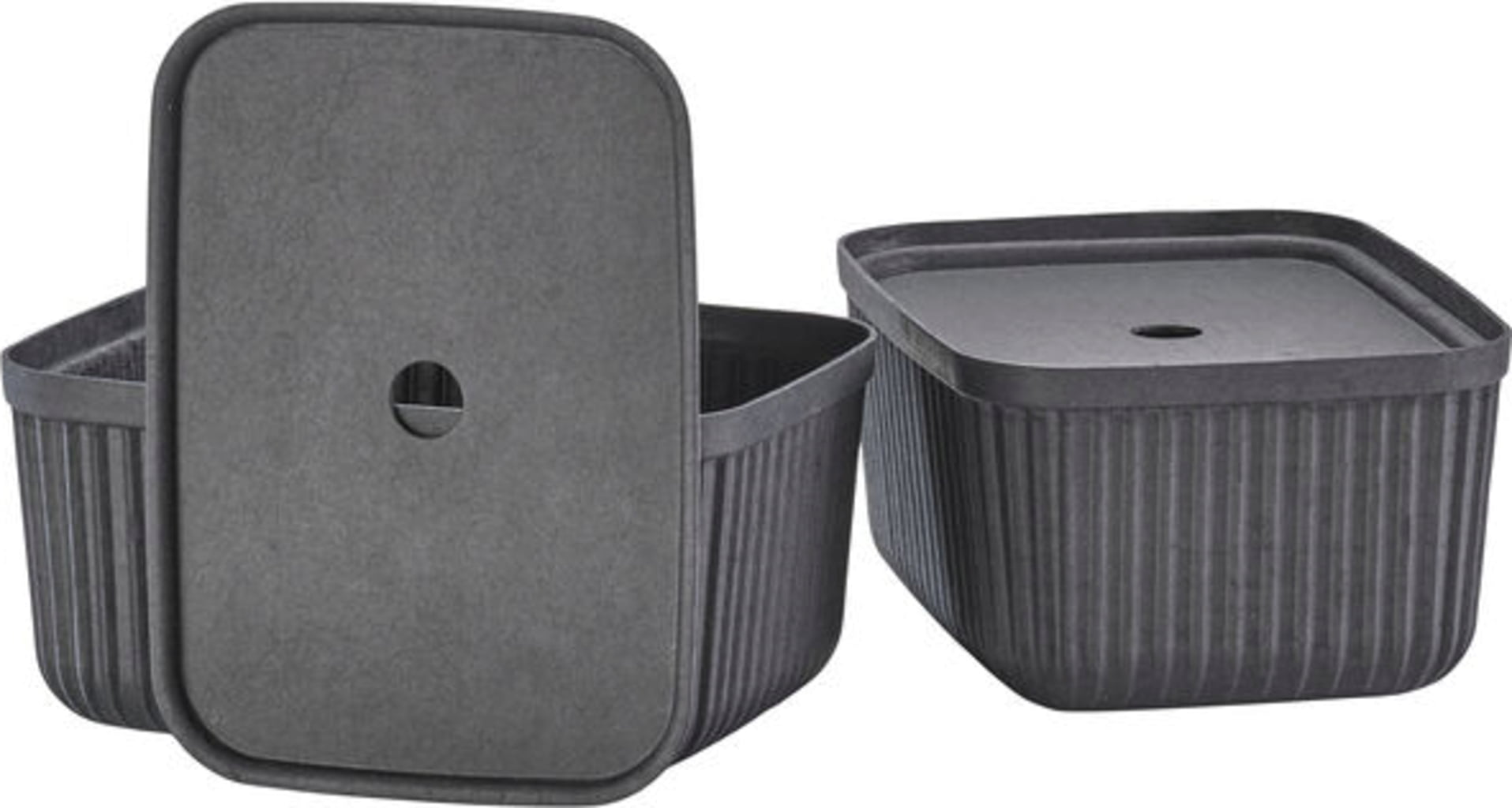 El característico motivo acanalado no solo les da un aspecto único, sino que también garantiza una resistencia y estabilidad extraordinarias. Ya sea en una estantería del salón, la oficina, el pasillo o el vestidor, estos recipientes biodegradables son un accesorio práctico y un elemento decorativo al mismo tiempo.