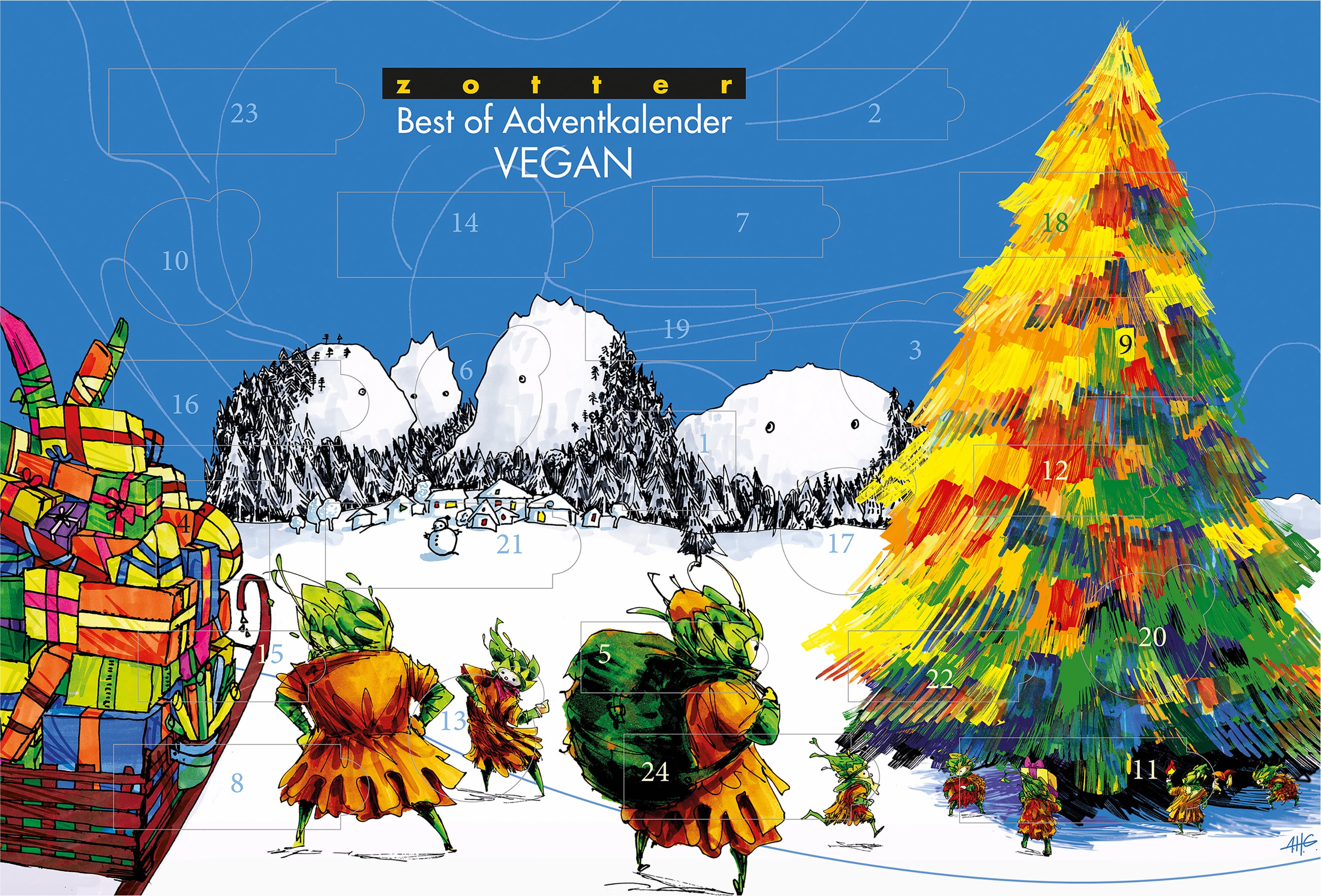 Detrás de cada puertecita se esconde una delicia vegana de Zotter. No hay manera más dulce de pasar el Adviento. Muchos chocolates originales, elegantes bombones con nuevos rellenos y barritas para hacer chocolate caliente... cada día podrás probar algo diferente. Una sensacional idea de regalo para amigos veganos.